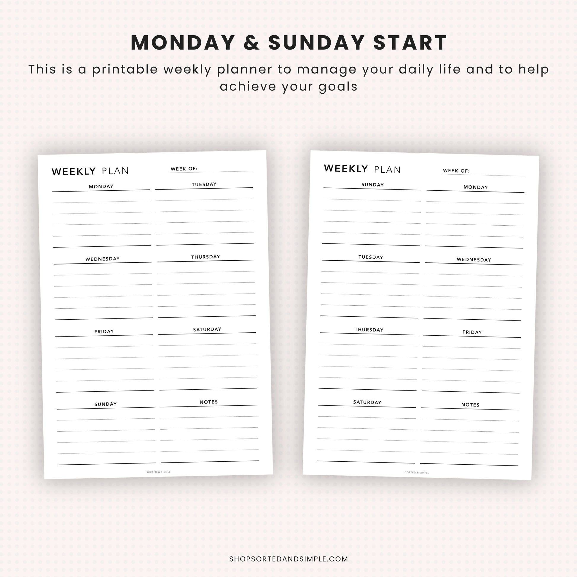Weekly Planner in A4, A5, Happy Planner Classic & Letter sizes!